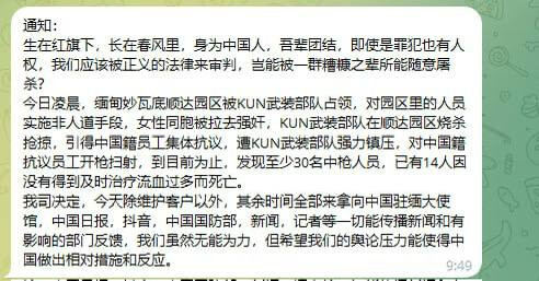 网友投稿:我们公司刚刚发布的通知,听主管说是老板的一个朋友在顺达已经中弹身亡了,现在顺达园区的缅军已经开始封锁消息了,接下来可能没什么消息会传出来 希望我们的舆论能起效果吧!